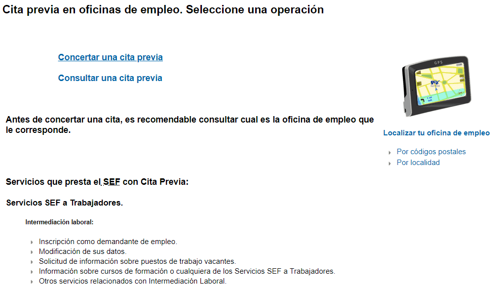 - Si el motivo de tu cita es la solicitud o tramitación de prestaciones, deberás solicitar ser atendido en las oficinas del SEPE. Debes concertar la cita previa en la web del organismo estatal.